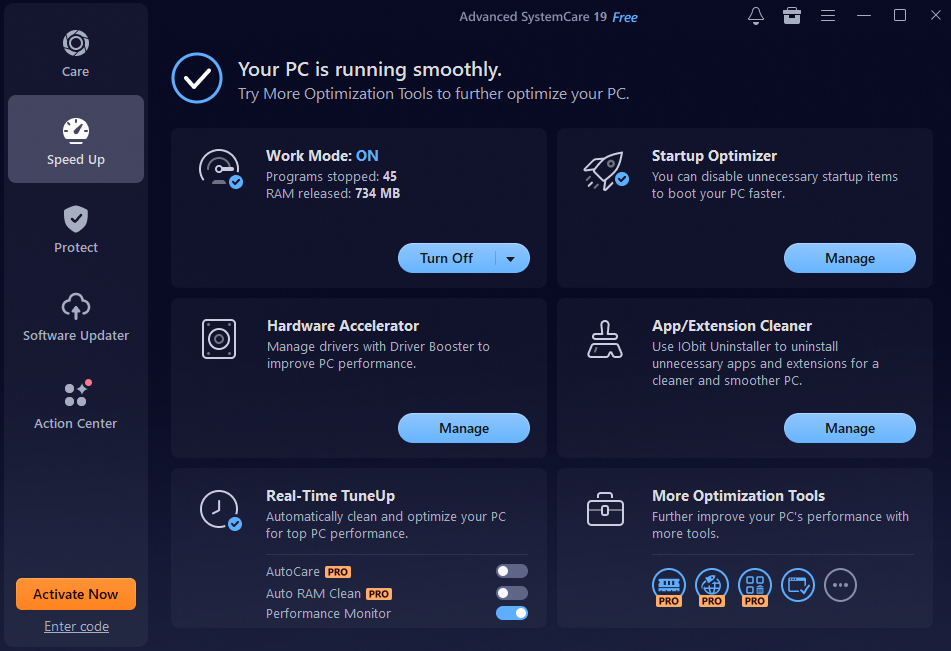 Advanced SystemCare 19 Free makes the entire process simple with AI-powered optimization, powerful cleaning tools, and intuitive controls. By focusing on startup optimization, deep cleaning, and system tuning, you can enjoy a noticeably faster boot time—sometimes up to 200% improvement.